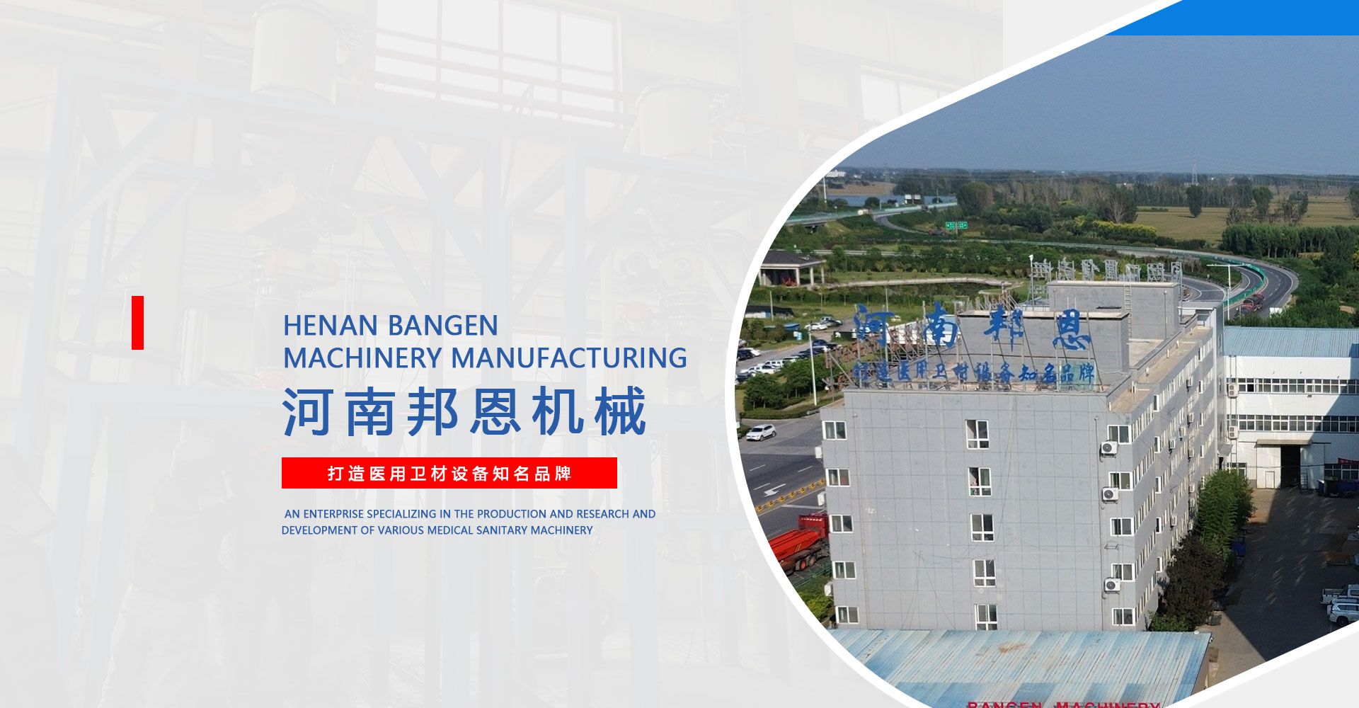 河南省邦恩机械制造有限公司,是生产和研发各种医用卫材机械的企业,是经国家相关部门批准注册成立的公司,目前生产的卫材机械有五十多个种类。 公司位于河南省长垣县满村工业区,占地30多亩,目前拥有员工210多人,其中工程技术人员80余人。公司位于308省道旁,西临G45高速公路,南靠新菏铁路,交通便利。邦恩从2005年开始生产医用机械设备,经过十五年的技术开发和生产实践,目前已经成为卫材机械设备行业中具有完整生产体系和批量生产规模化生产企业。