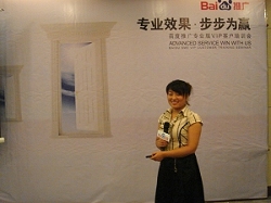 2009年8月21日,以“专业效果 步步为赢”为主题的百度推广专业版VIP客户培训会在焦作万方金莎酒店如期举行。虽然天空下起了大雨,但是依然没有能够阻挡客户的热情,带着对百度的厚爱以及对专业版的支持,客户们如约而至,认真听取了百度客服优秀培训讲师张姣女士带来的精彩演讲。
